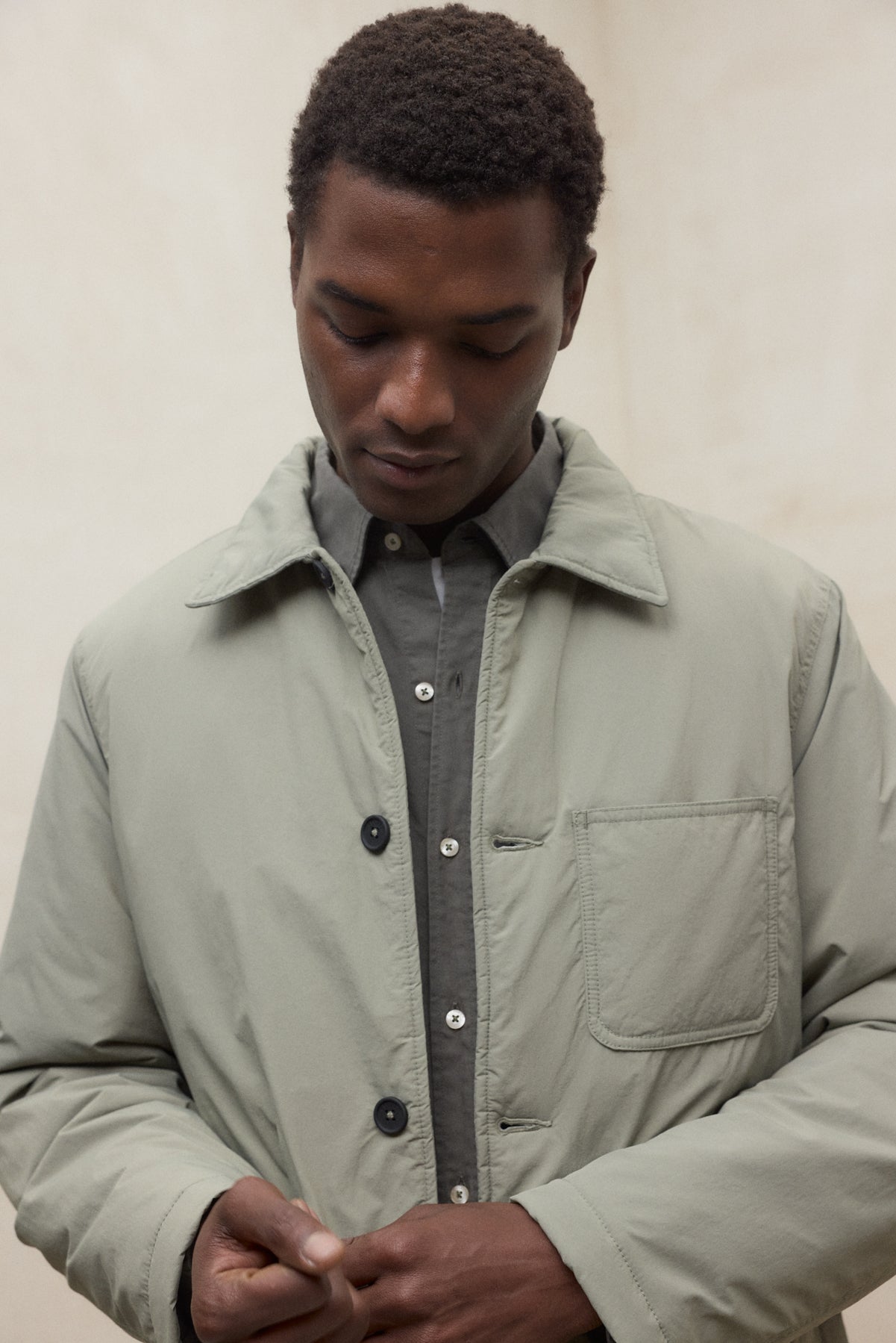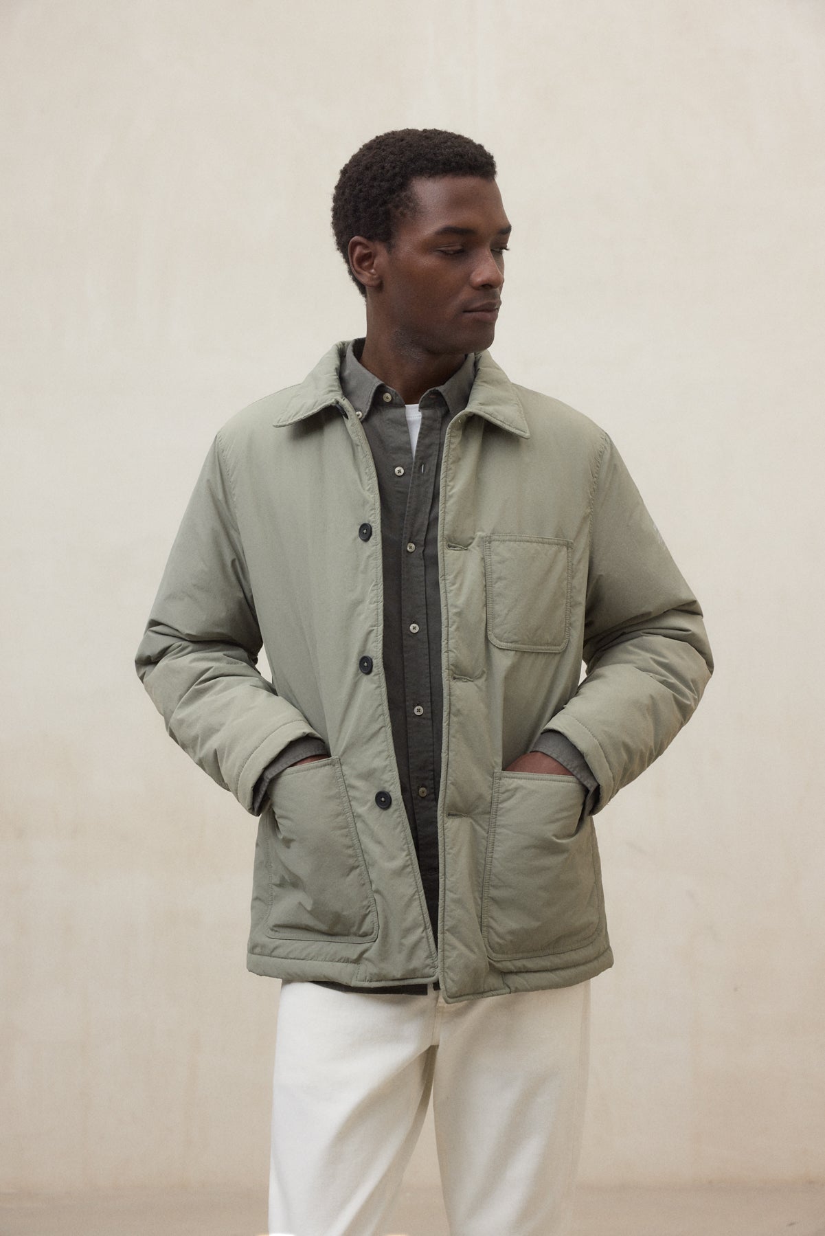 겉감 100% 리사이클 폴리아미드, 충전재 100% 리사이클 폴리. 셔츠형 아웃포켓으로 캐주얼한 무드를 더했습니다.