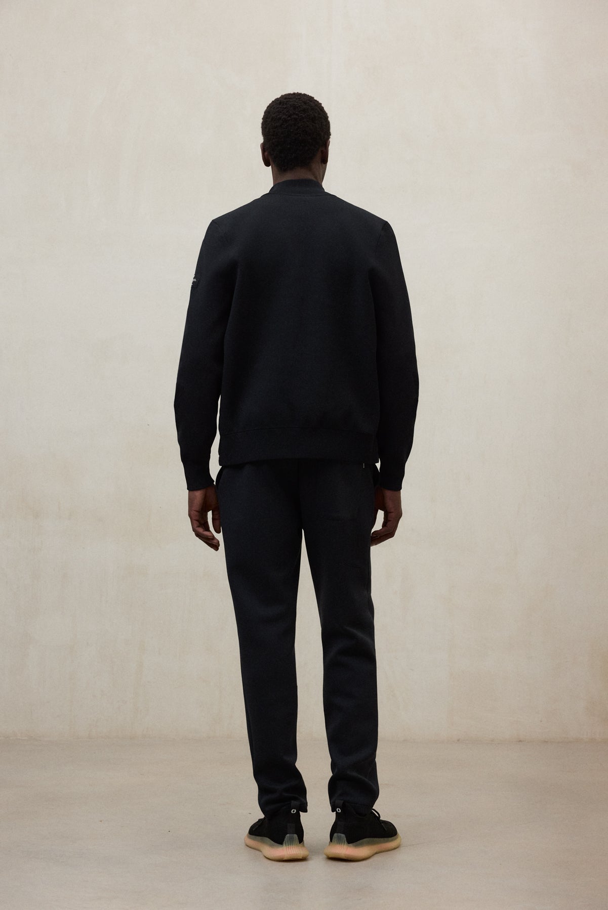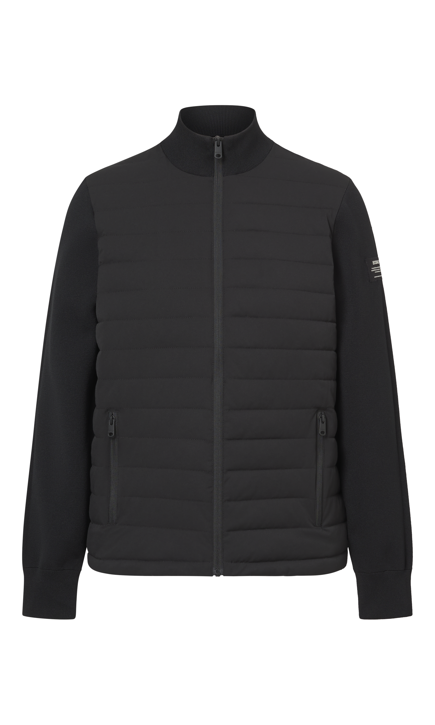올 리사이클 폴리에스터의 간결한 패디드 재킷. 하이 칼라와 니트 소매가 실루엣에 디테일을 더합니다.
