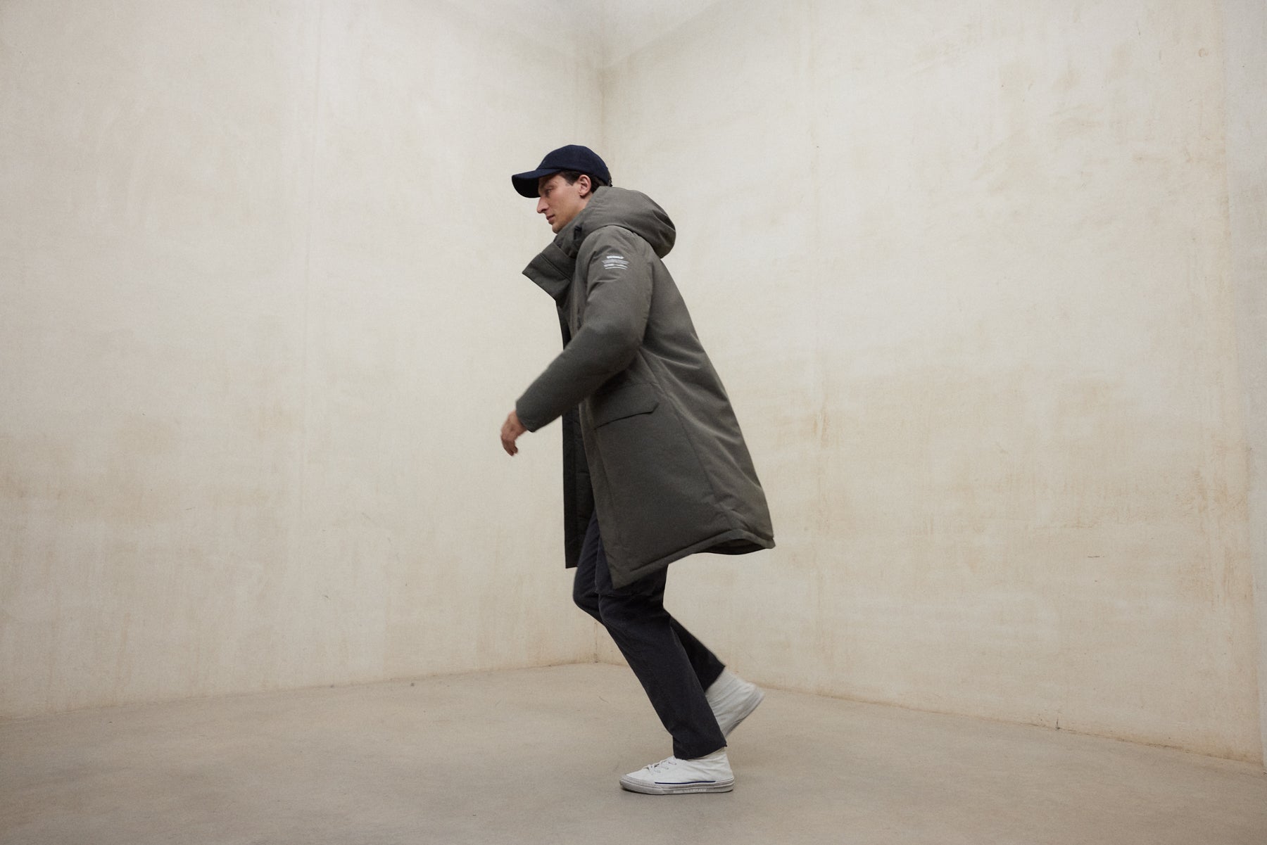 오션 얀 58%와 Tex2Tex 42%의 리사이클 폴리. 도심과 아웃도어 사이에서 균형 잡힌 보온과 실루엣을 제공합니다.