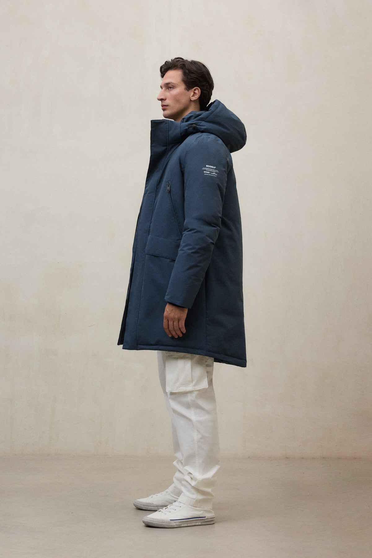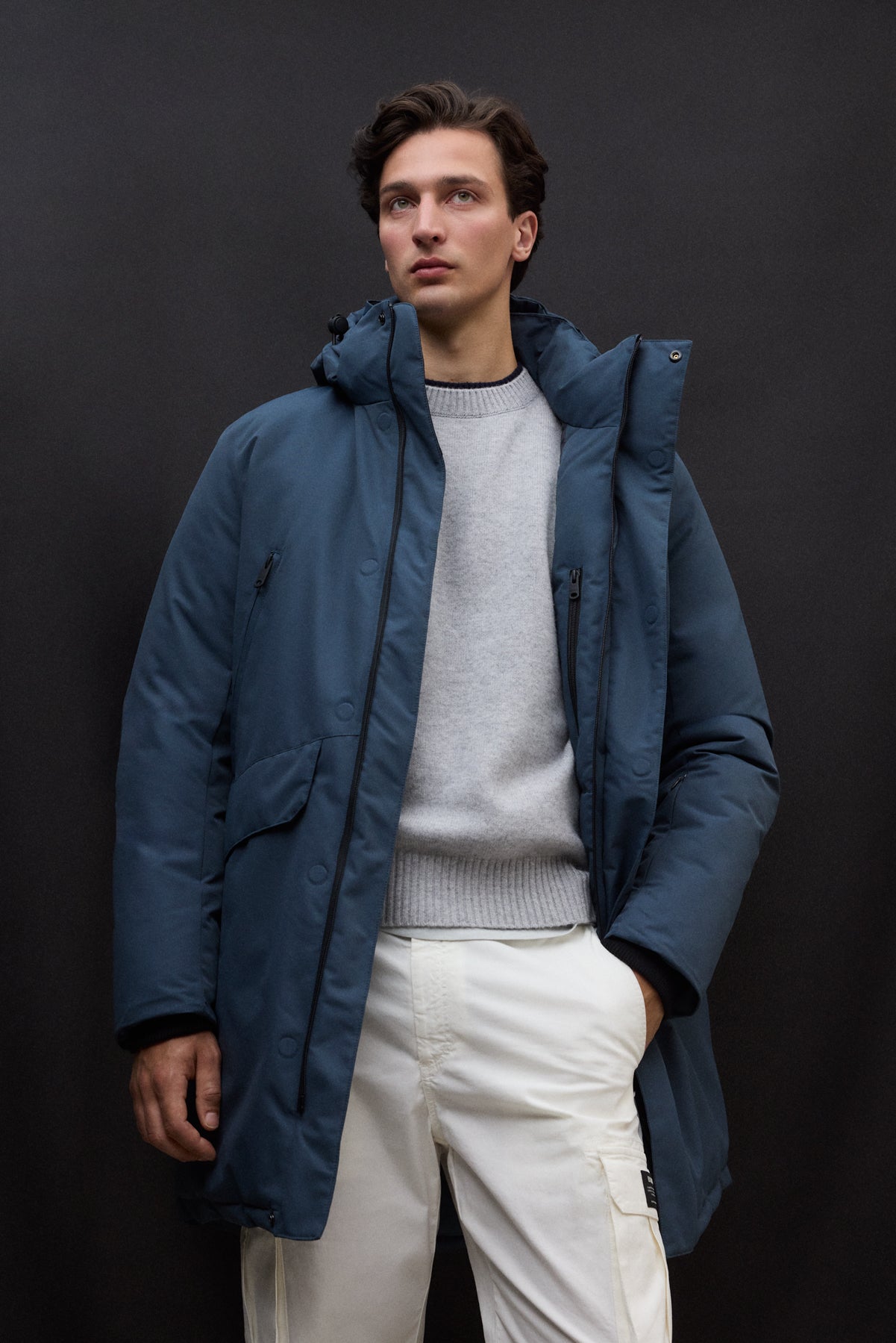 오션 얀 58%와 Tex2Tex 42%의 리사이클 폴리. 도심과 아웃도어 사이에서 균형 잡힌 보온과 실루엣을 제공합니다.
