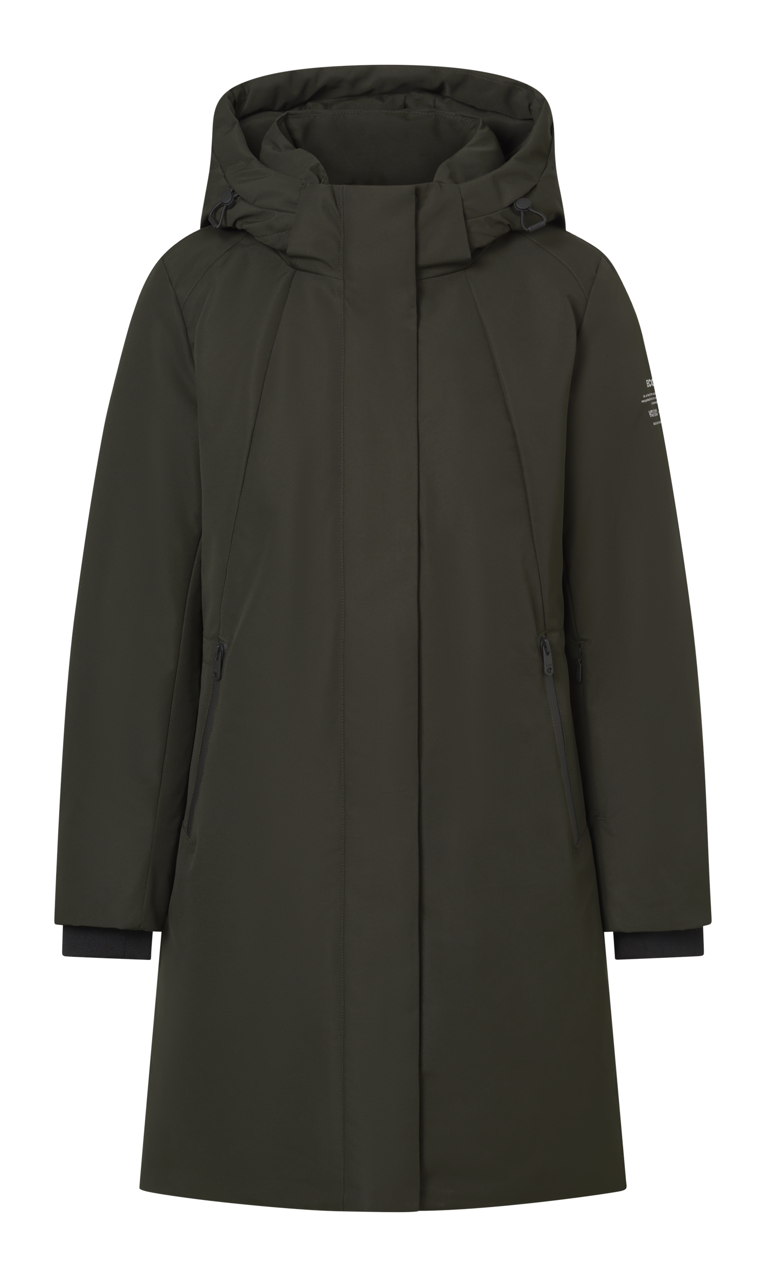 오션 얀 58%와 Tex2Tex 42%의 리사이클 폴리에스터로 만든 롱 코트. 한겨울의 찬 공기를 단정히 막아주며 가벼운 착용감과 안정된 보온을 제공합니다.