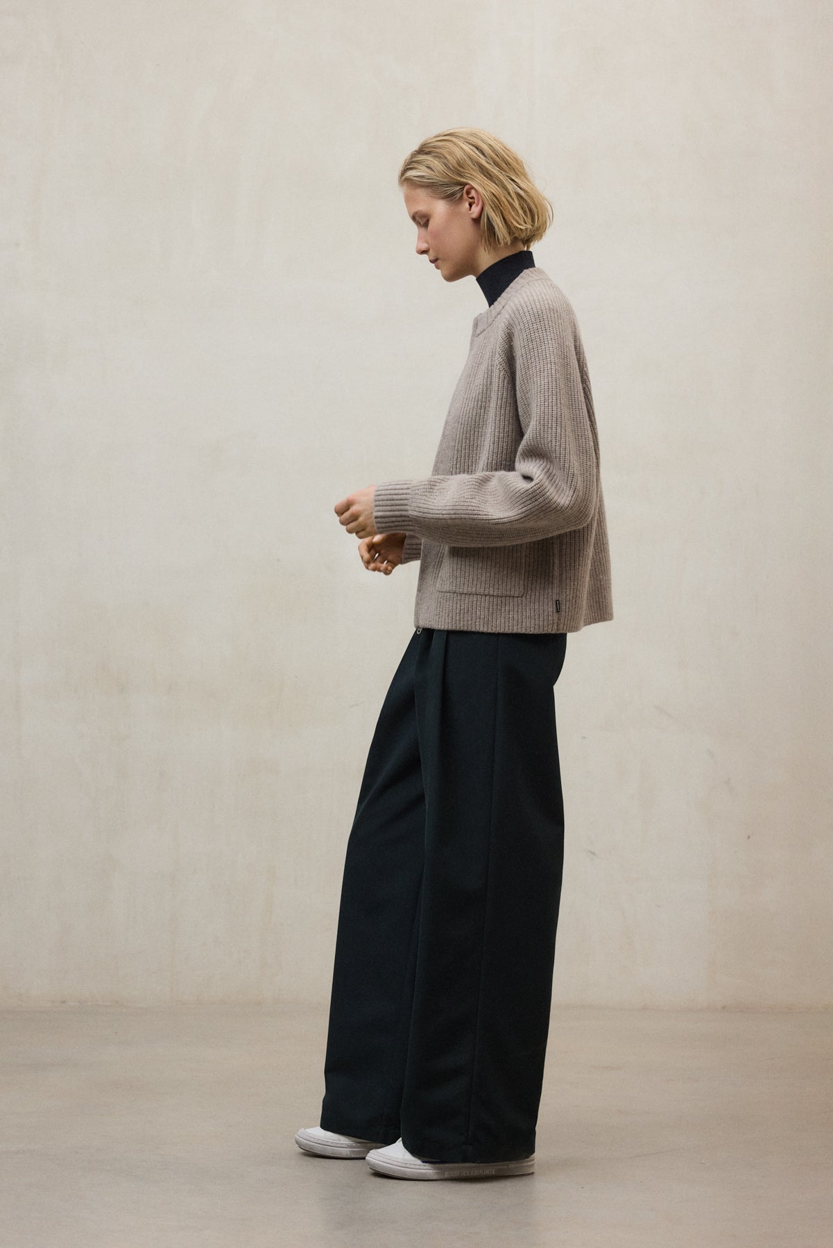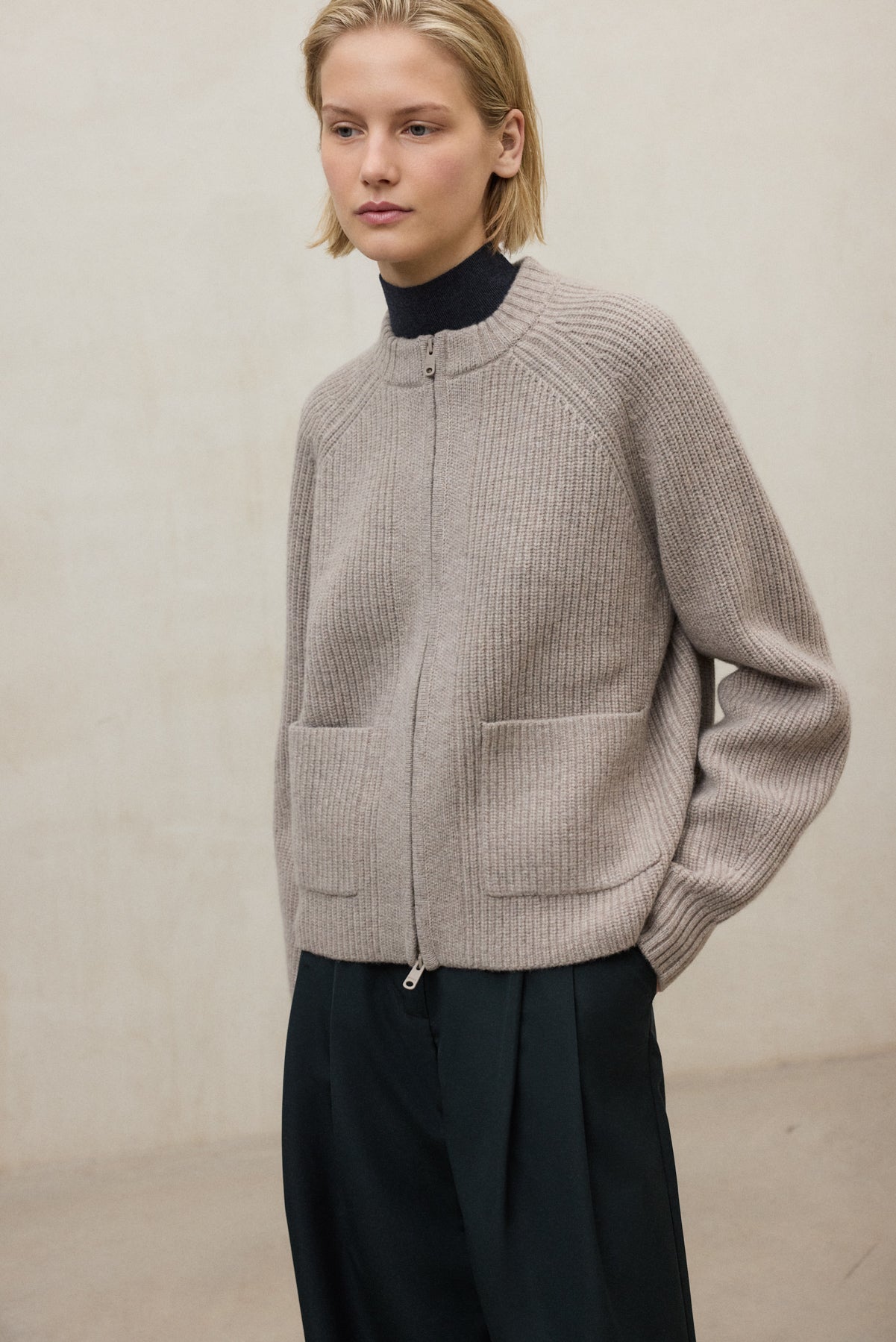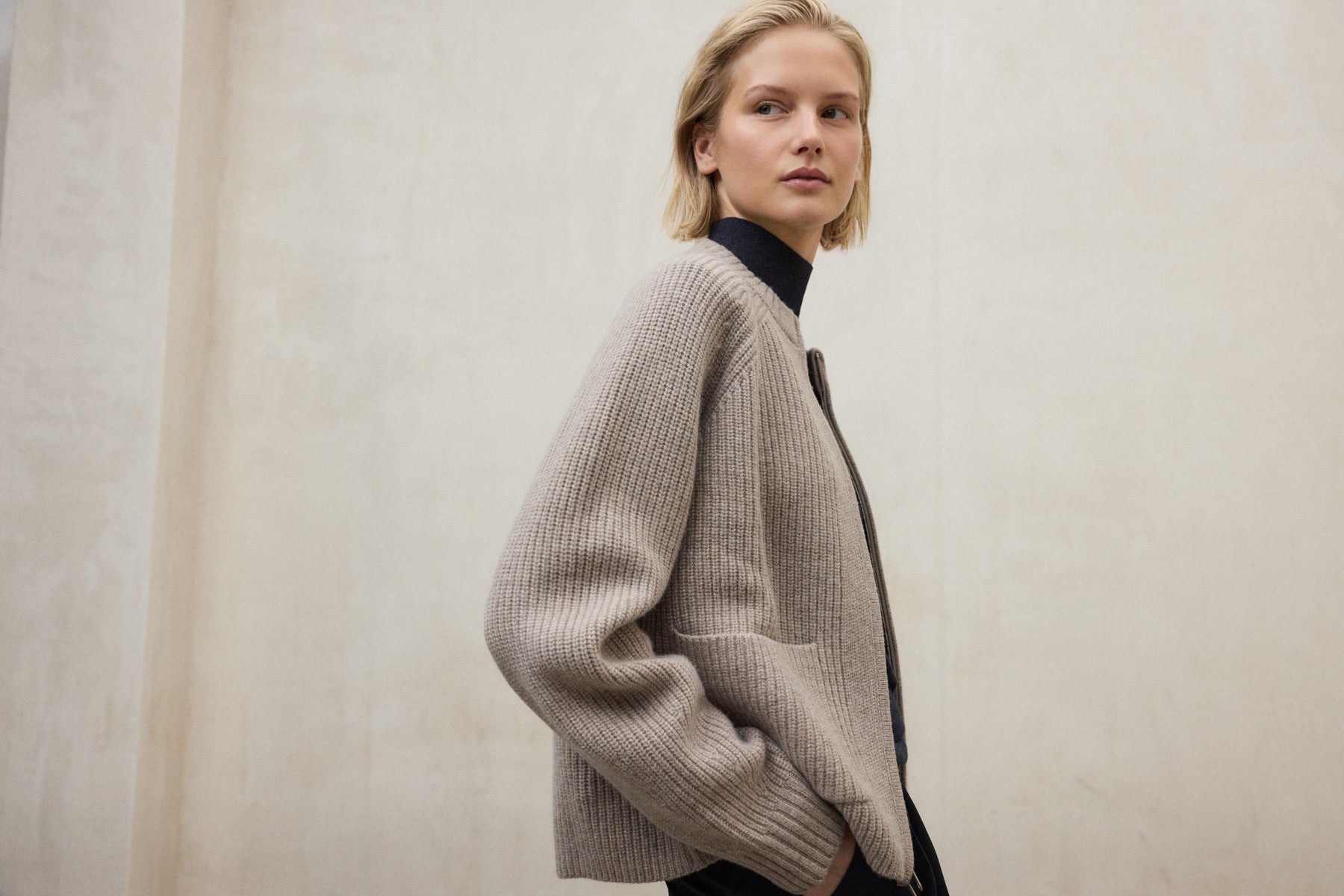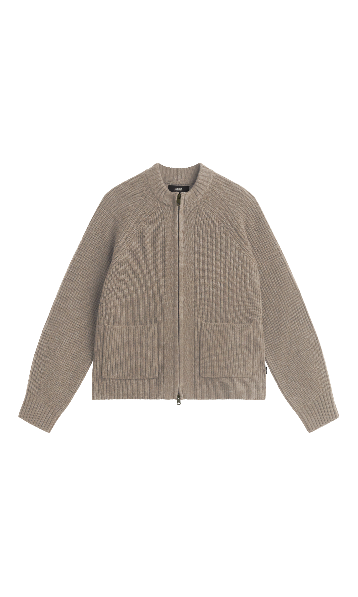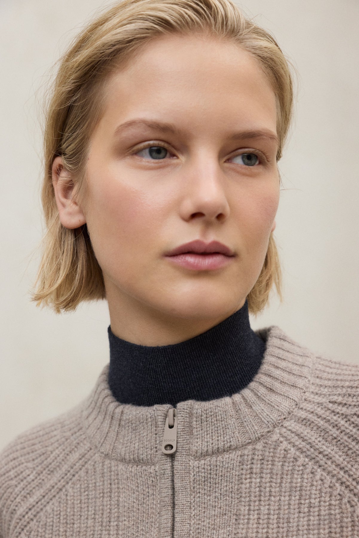 100% 리사이클 면의 하프 집업 니트. 포근한 조직과 단정한 비례로 간절기에 특히 빛납니다.