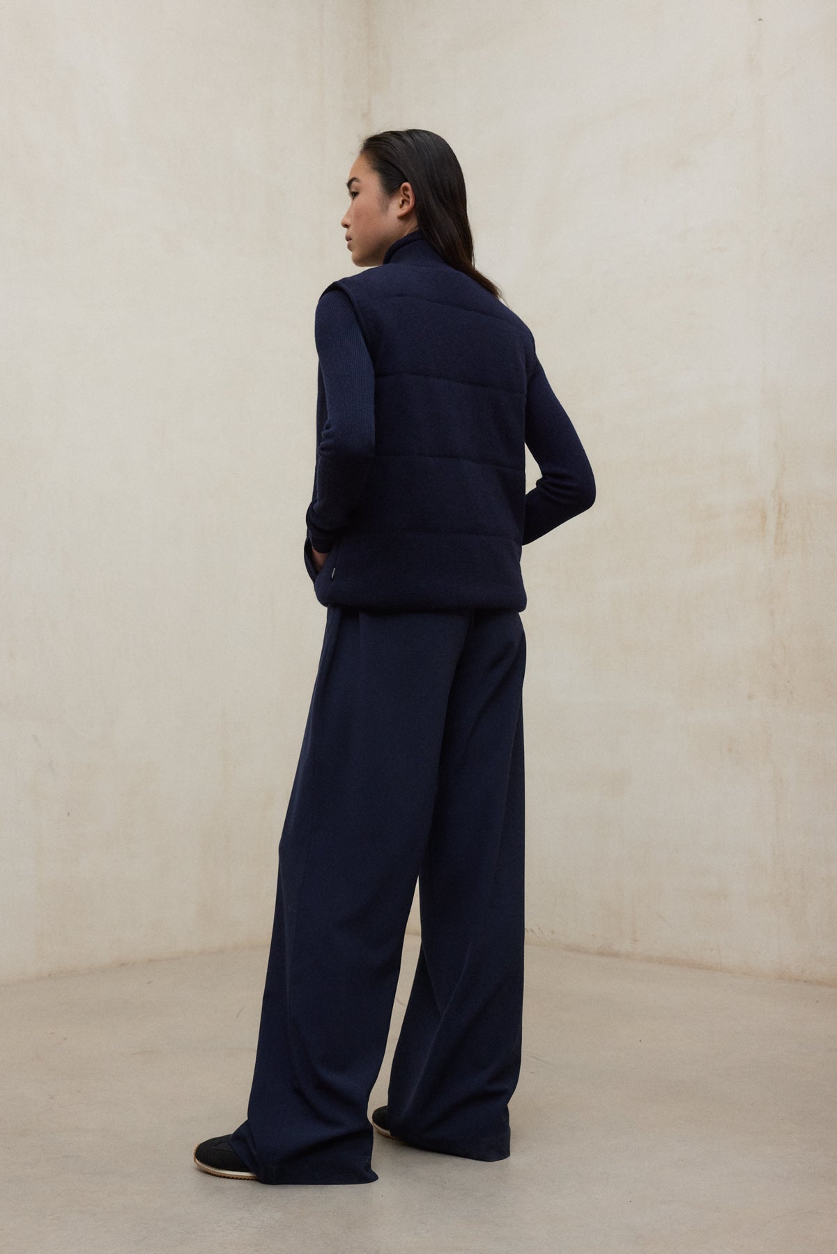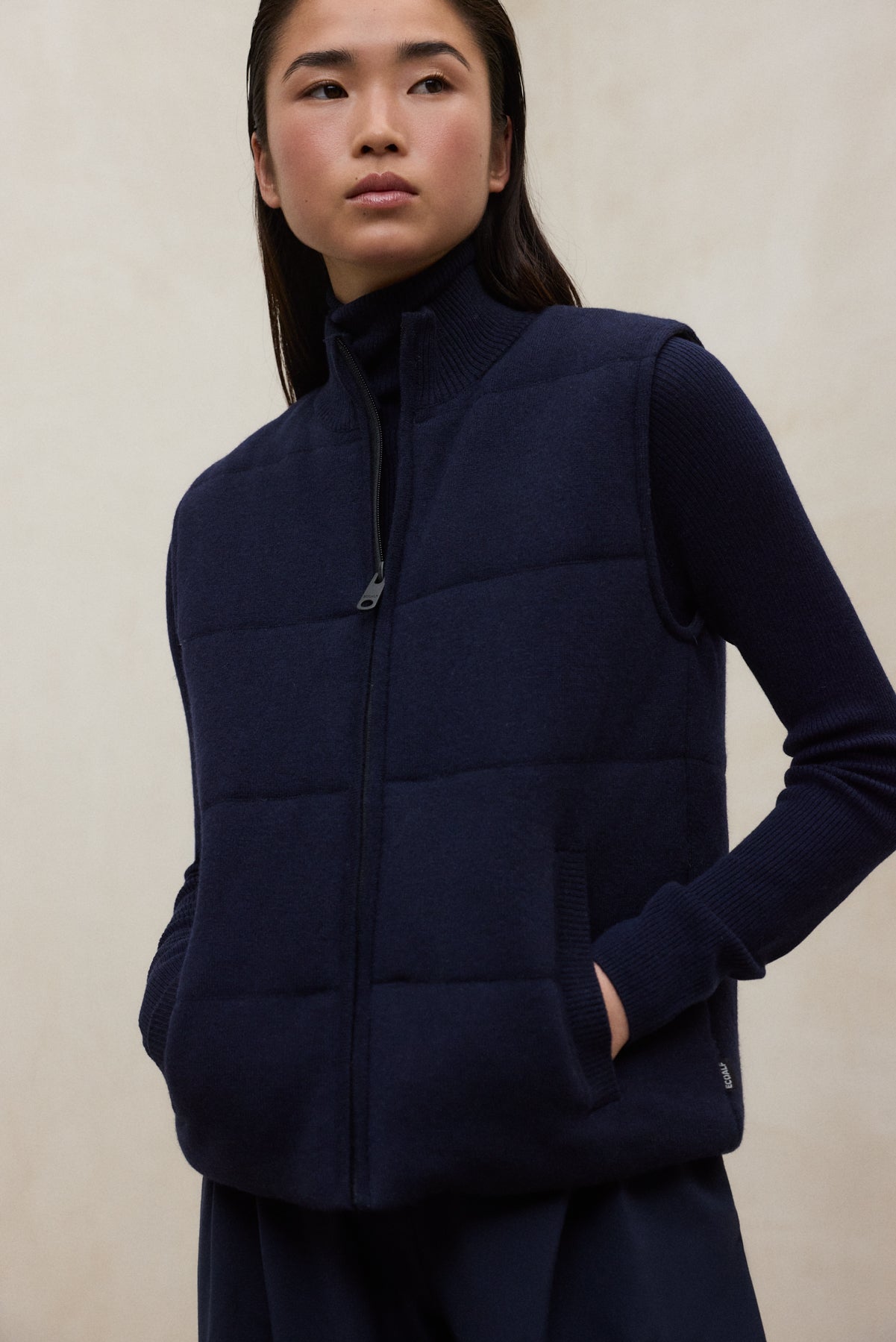 겉감 100% 리사이클 울, 충전재 100% 리사이클 폴리. 플리스 터치로 겨울 한기를 단정히 막습니다.