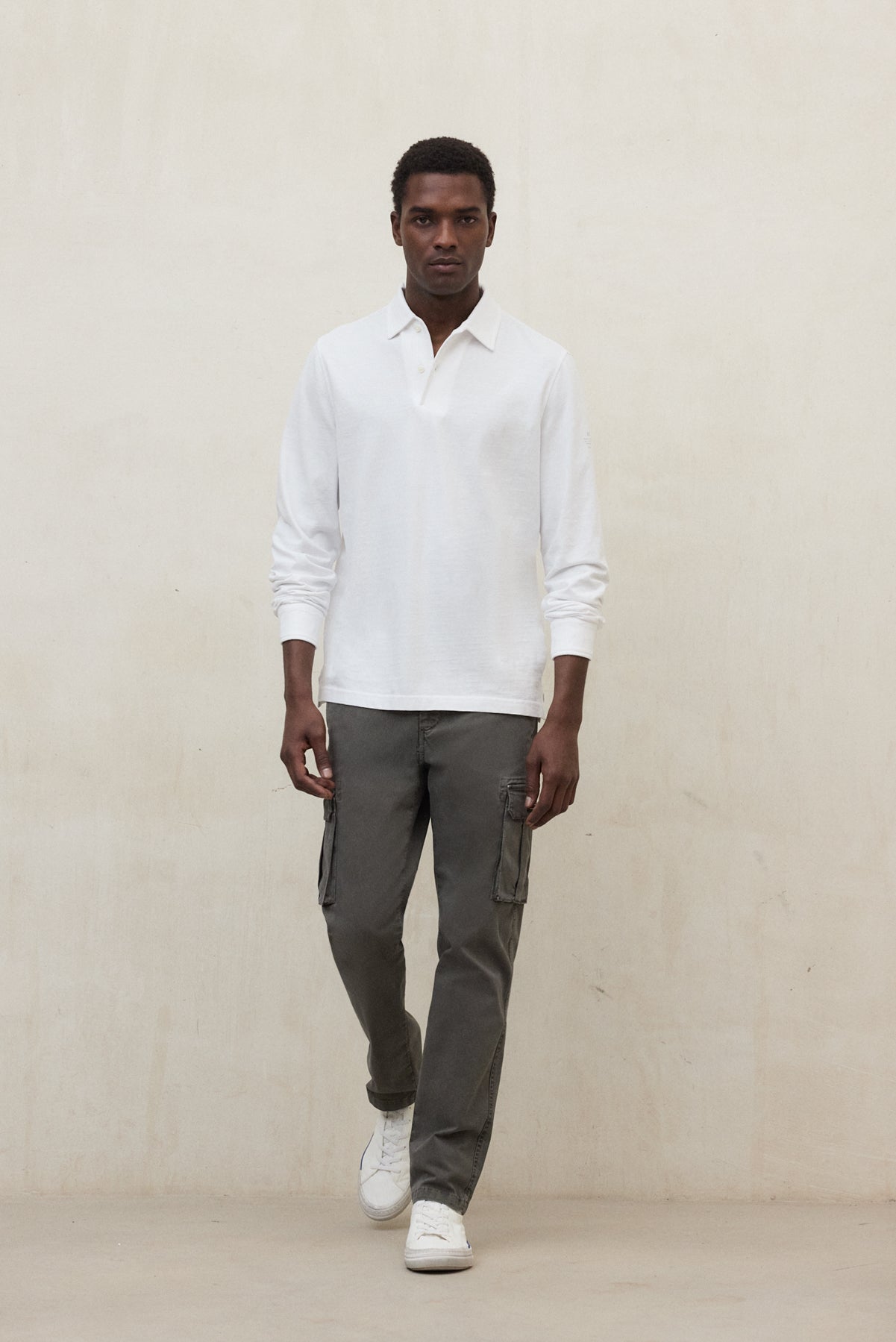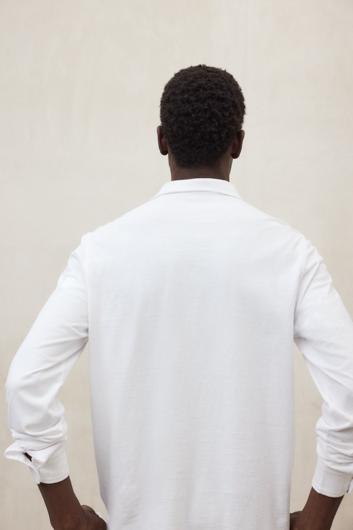 유기면 50%, 리사이클 면 50%. 이탈리안 칼라로 완성한 담백한 폴로.