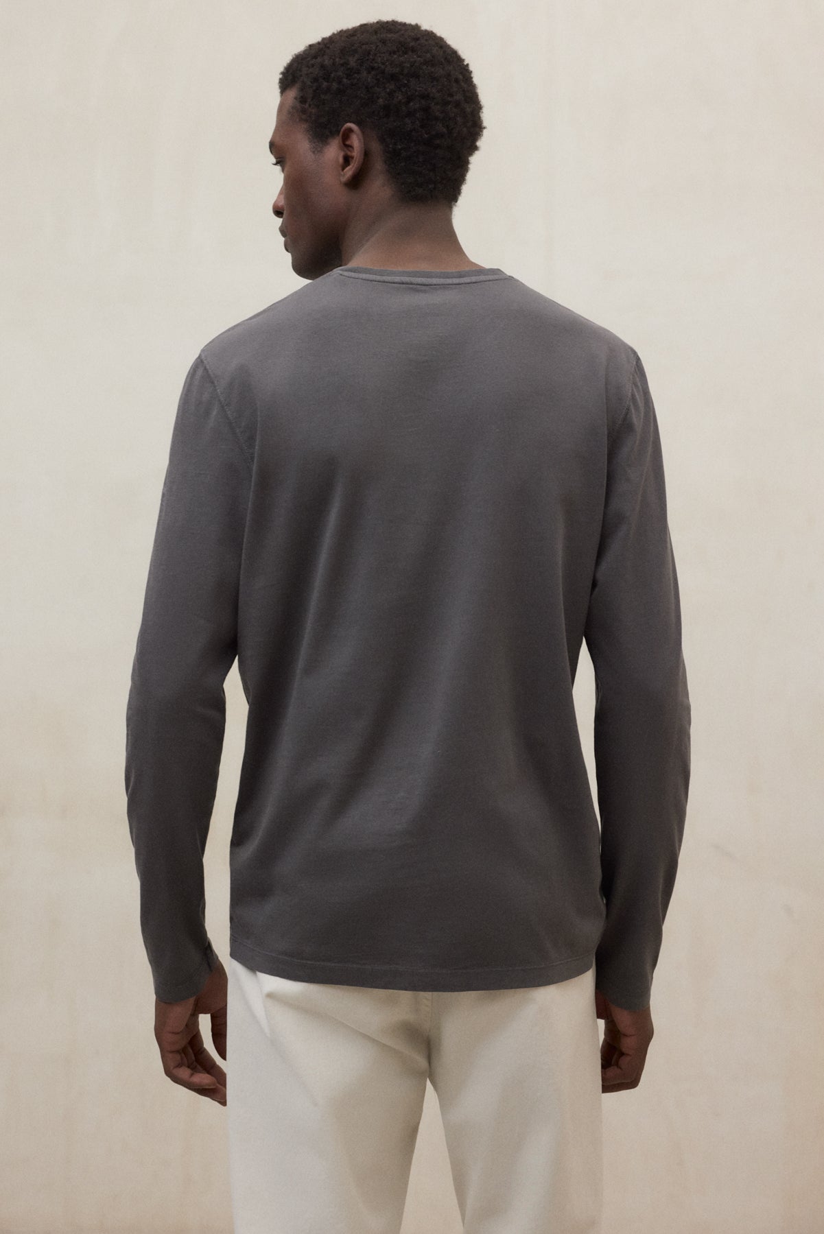 100% 리사이클 면의 담백한 베이식 티. 물과 CO₂를 아끼는 선택이 일상의 표준이 되도록 제안합니다.