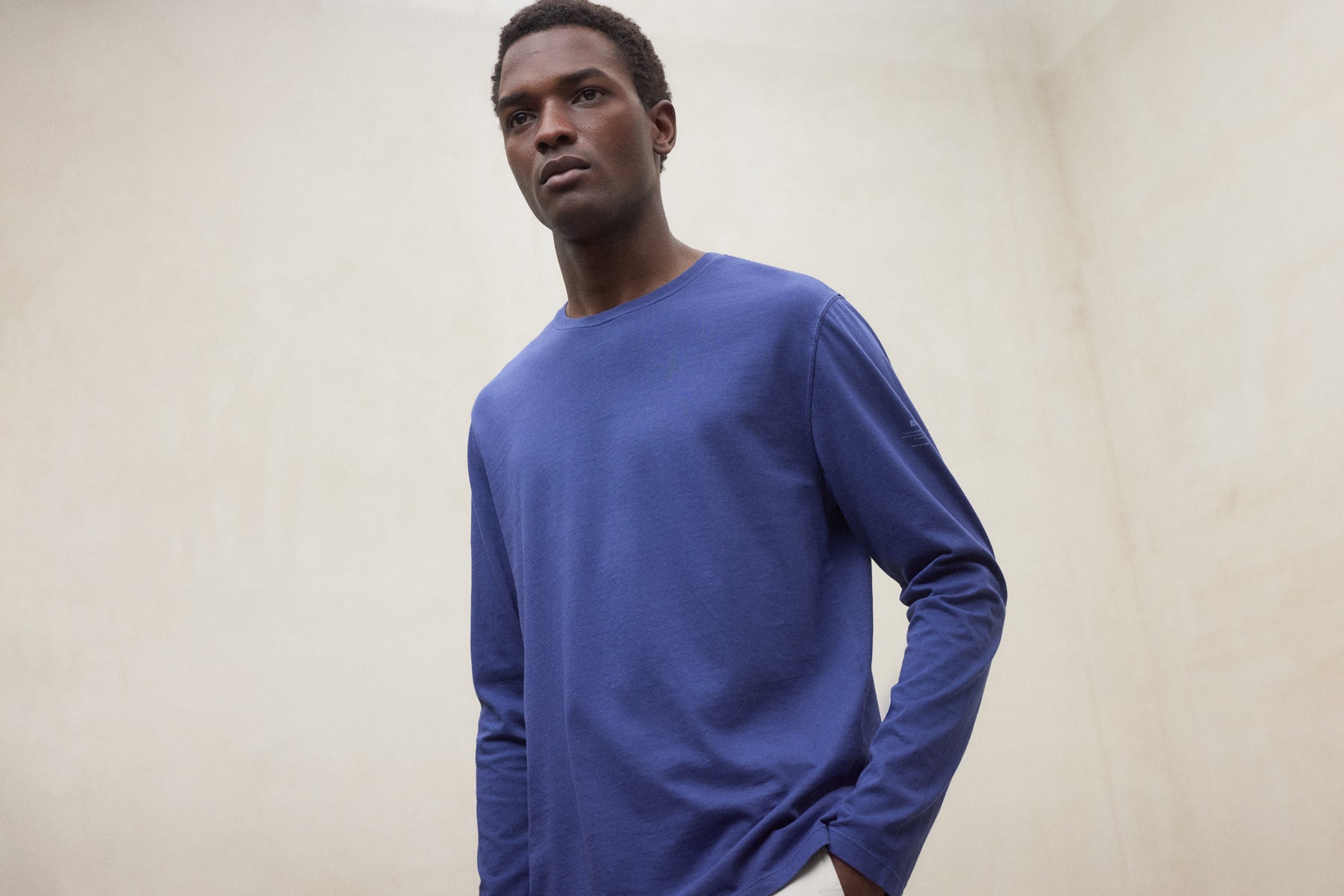 100% 리사이클 면의 담백한 베이식 티. 물과 CO₂를 아끼는 선택이 일상의 표준이 되도록 제안합니다.