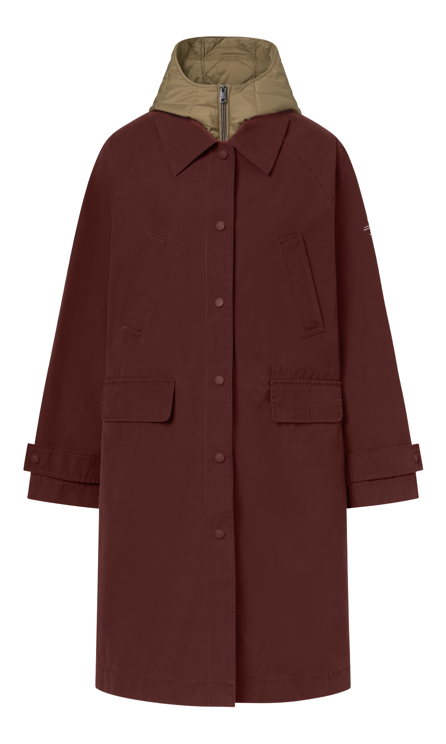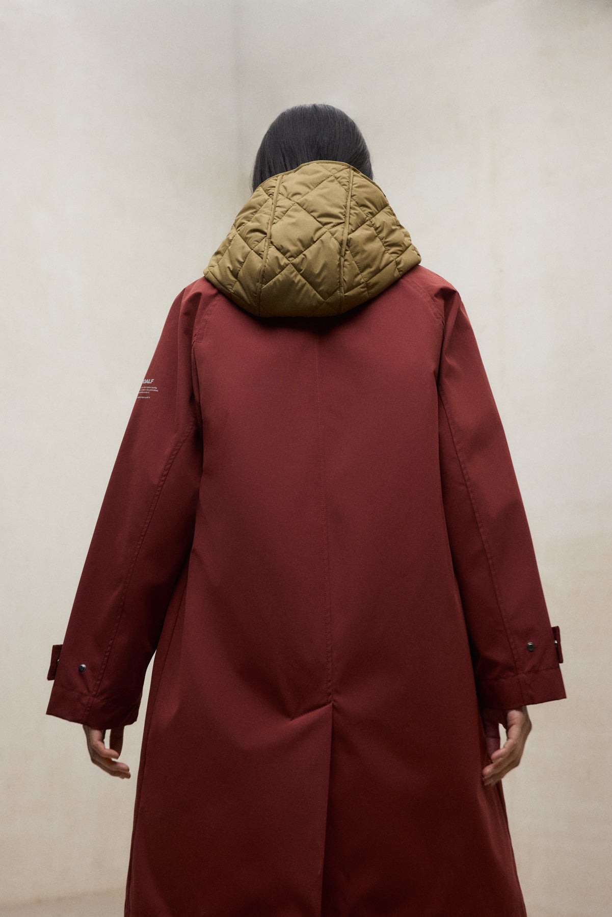 겉감 리사이클 폴리 54%, 내피 베스트는 패디드 구조로 보온성을 더했습니다. 트렌치의 절제된 선과 베스트의 기능성을 한 벌에.