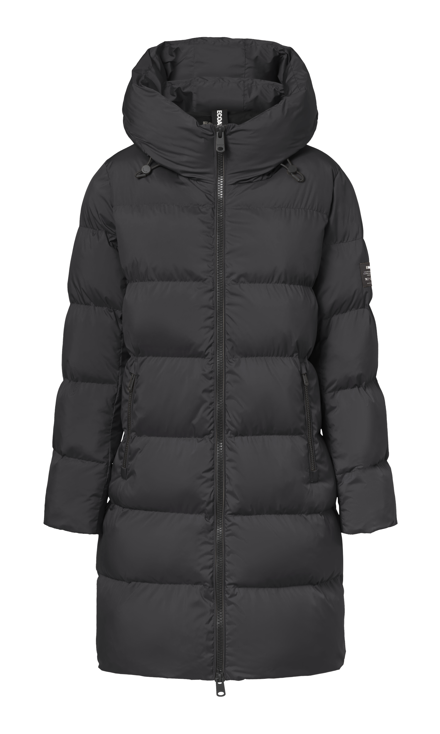 리사이클 폴리와 PrimaLoft® 충전재의 롱 코트. 양방향 지퍼와 발수 마감으로 도심의 겨울을 편안하게 건넙니다.