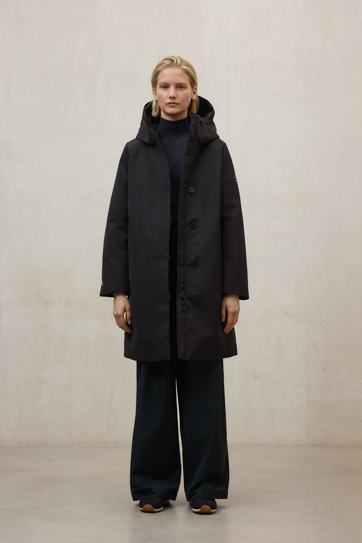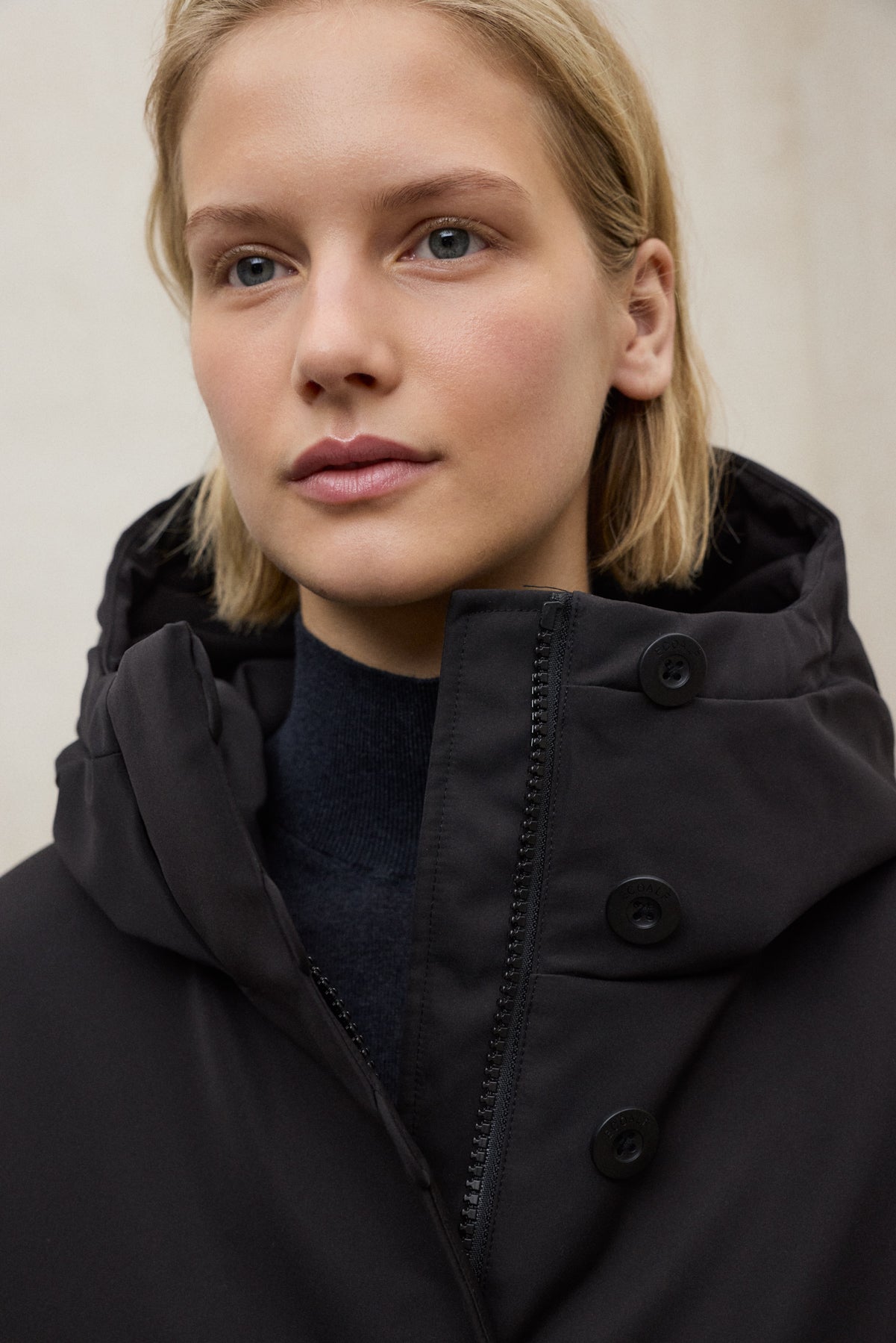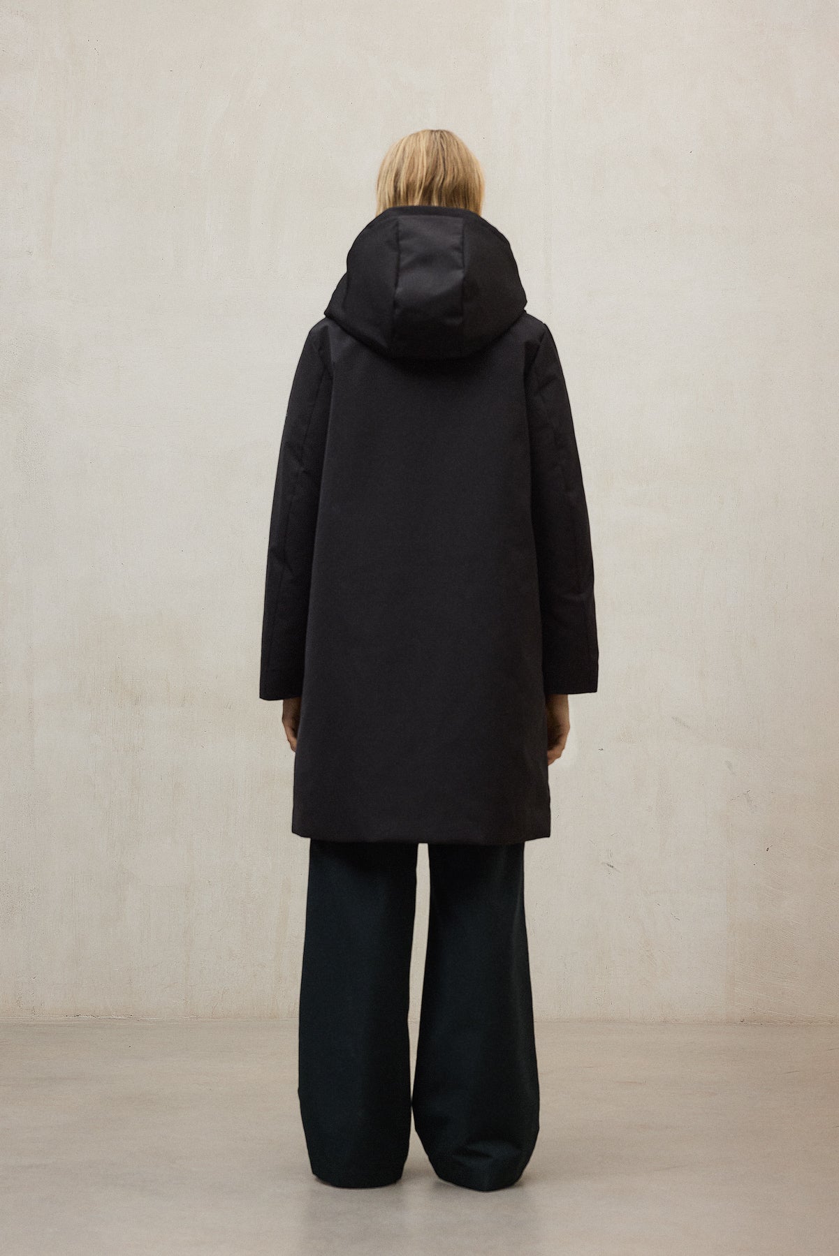 Tex2Tex 65%와 오션 얀 35%의 리사이클 폴리에스터. 릴랙스드 실루엣과 조절형 후드로 편안함과 실용을 동시에 담았습니다.