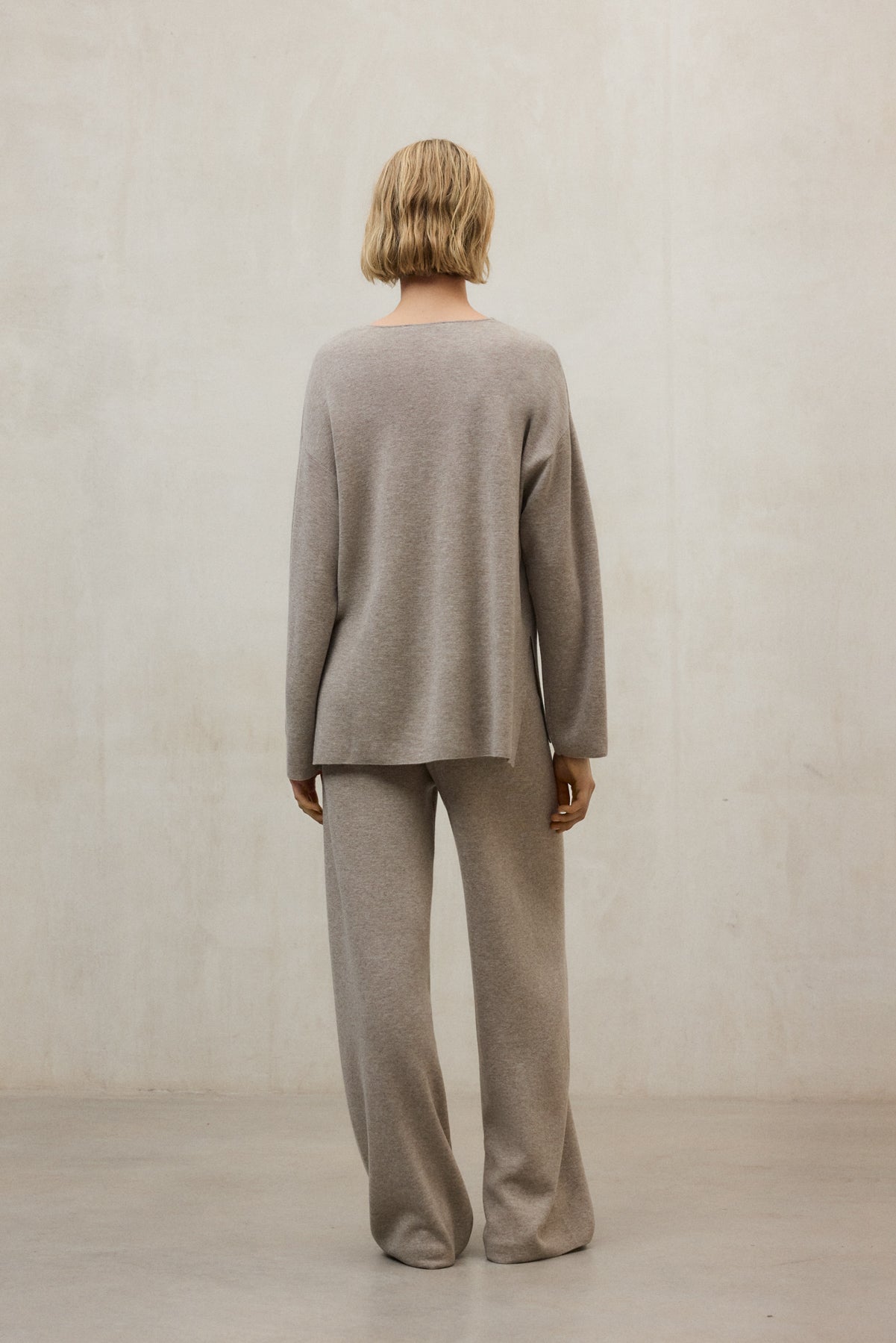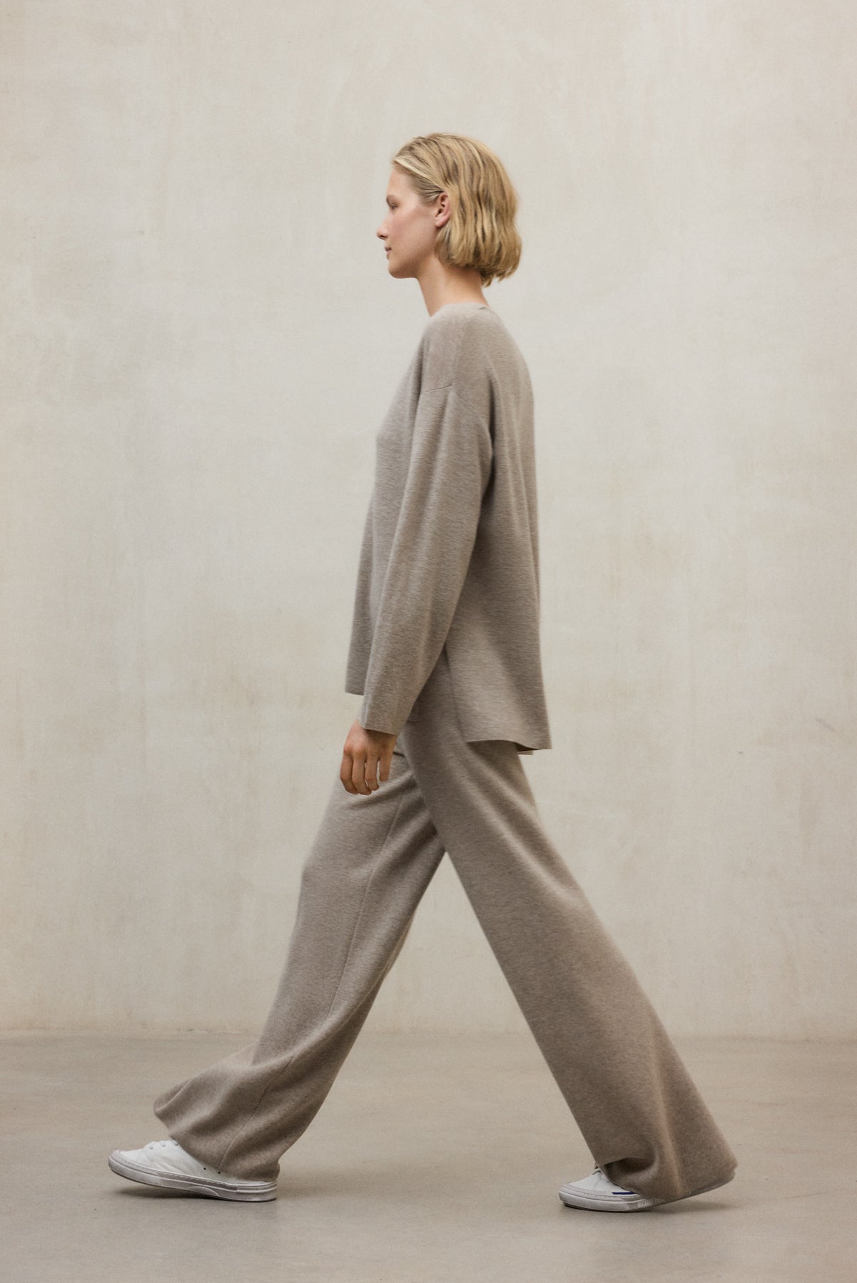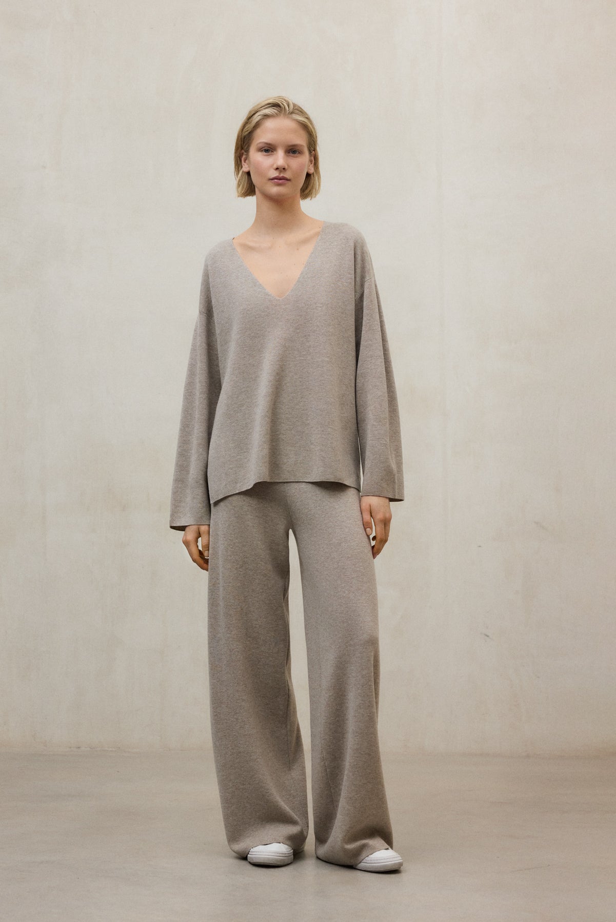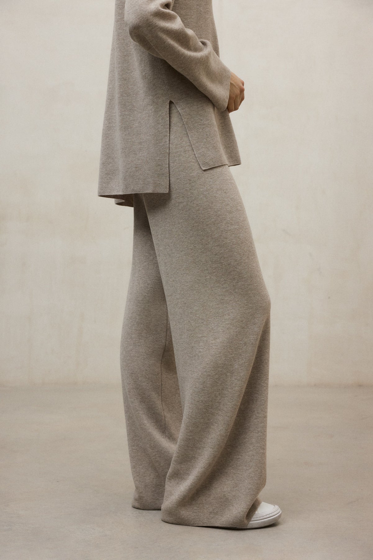 리사이클 울 50%, TENCEL™ 라이오셀 50%. 조절형 엘라스틱 허리의 와이드 실루엣으로 편안함을 더했습니다.