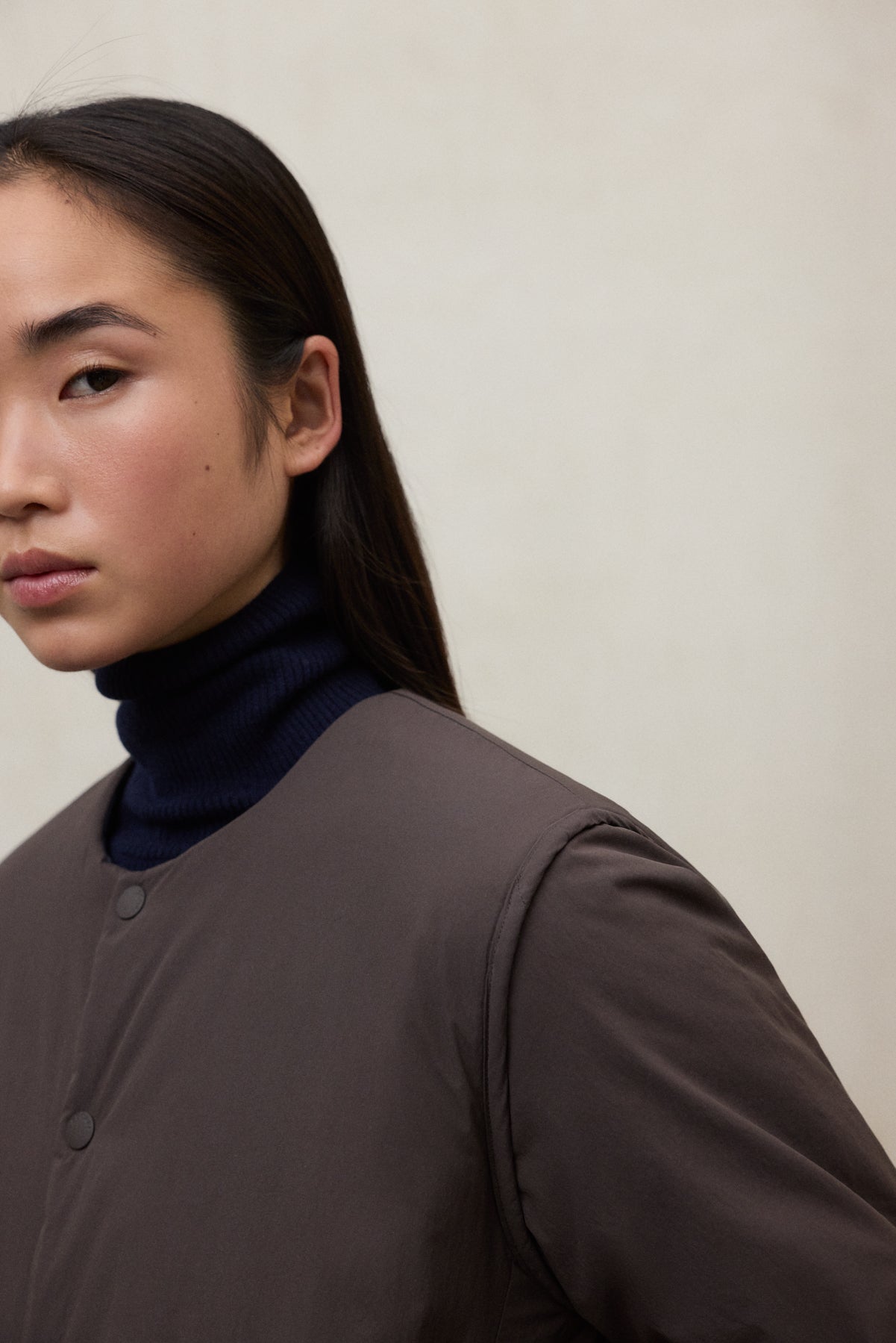 100% 리사이클 폴리아미드 겉감 + 리사이클 폴리 충전재. 리버서블의 두 가지 표정과 오버사이즈 실루엣으로 활용도를 넓혔습니다.