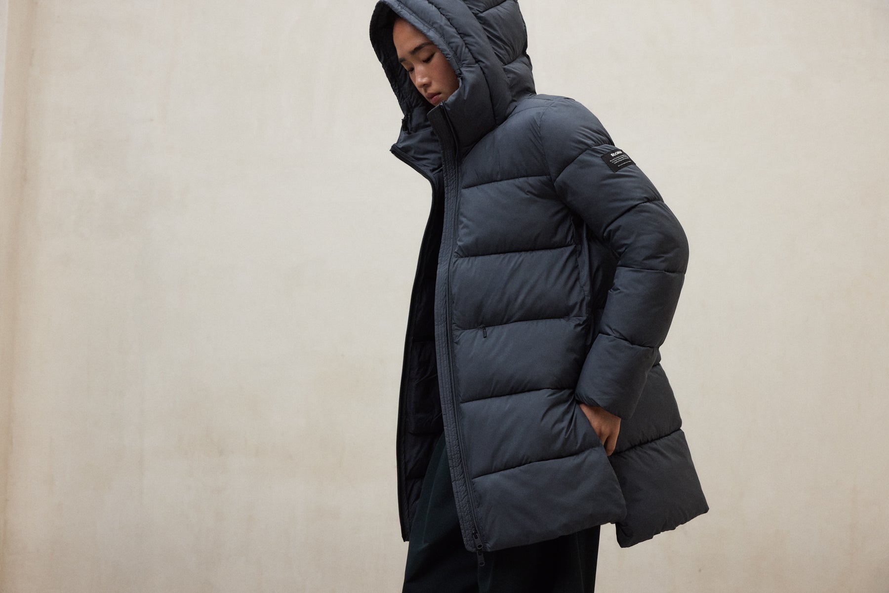 • 양방향 전면 지퍼, 발수, PFC-프리, 비건